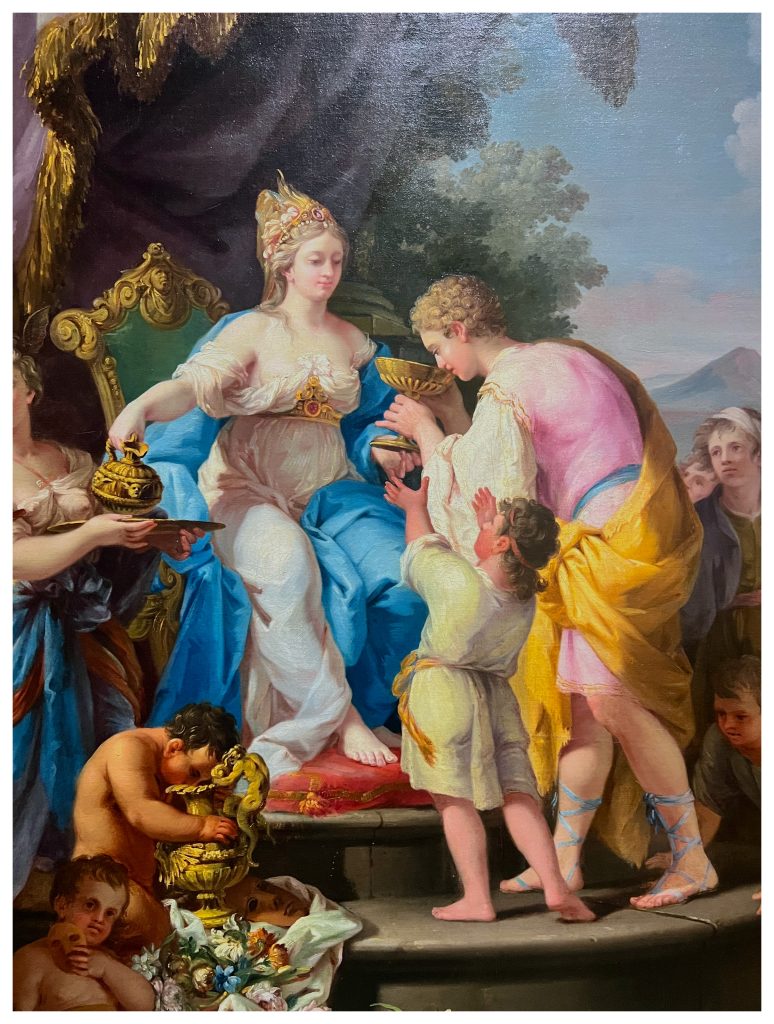“Yes, the tall guy is drinking from her goblet,” my friend Millie said of the photo of the painting I sent, “but she’s still looking at you.”